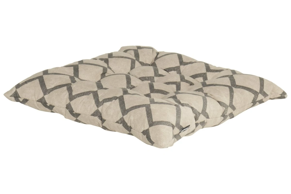 Een constante herhaling van een ruit vorm het patroon van het Jason Sand. Een rustig dessin dat uw tuinset net wat meer sfeer en comfort geeft! De stof van het kussen bestaat uit een combinatie van katoen en polyester. Door deze combinatie is het kussen sterk, maar door het katoen toch ademend. Ook is het textiel makkelijk te reinigen!